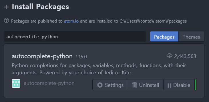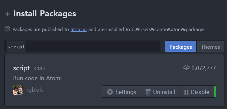 아톰은 텍스트 에디터 기능 뿐만이 아닌 패키지 설치로 파이썬, C, Nodejs 등 여러 언어를 지원하여 상당히 편리합니다.