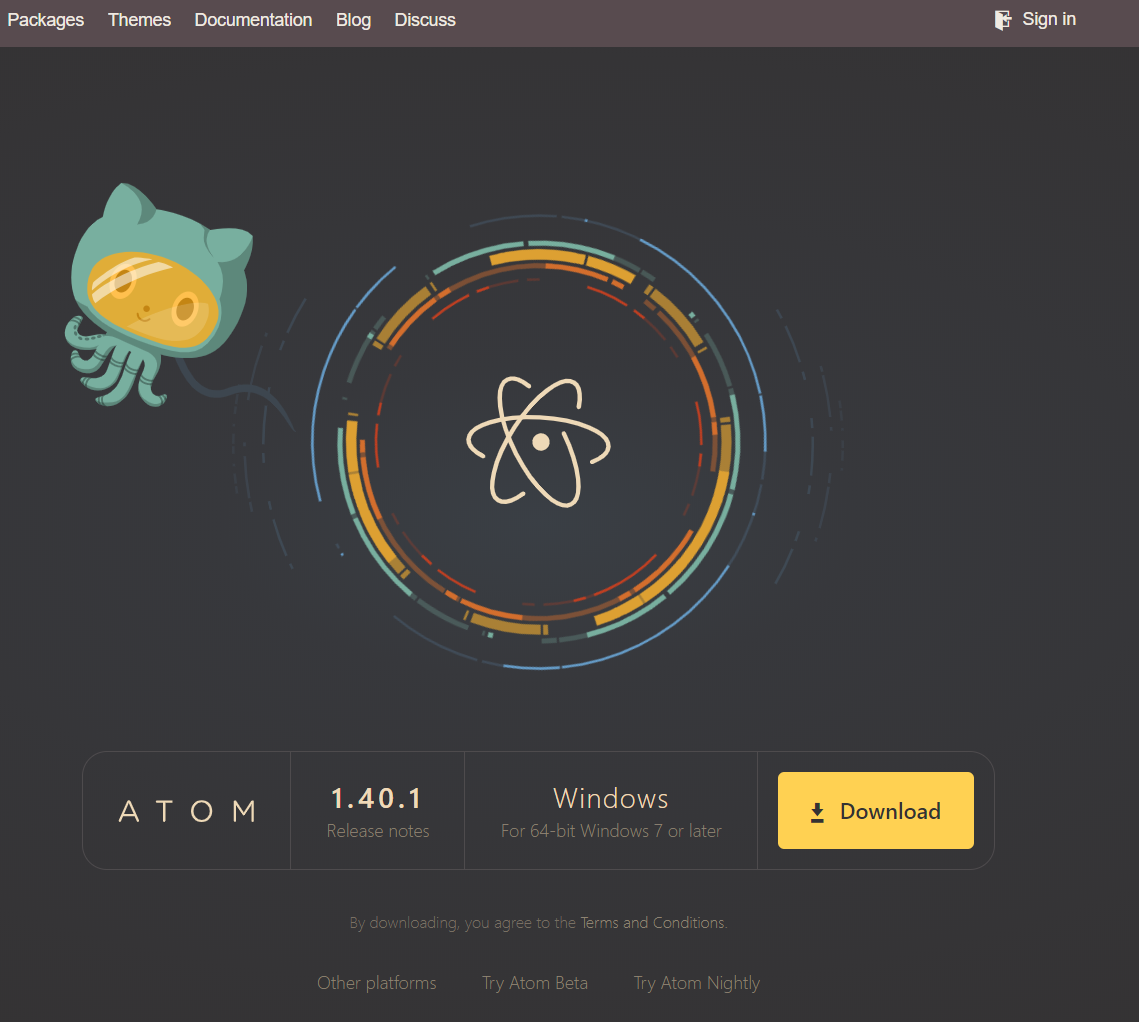 먼저 아톰 공식 웹사이트에 들어갑니다.