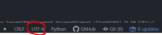 만약 UTF-8이 아니라면, UTF-8로 변경 후 다시 시도해봅니다.